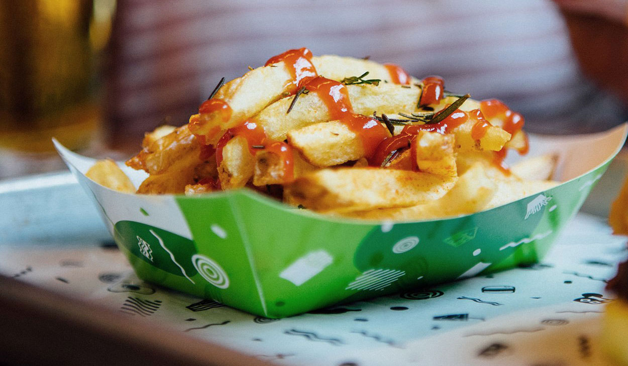 Cabana Burger's new visual identity drew inspiration from camping and outdoor pursuits. It incorporated illustrations, camouflage textures, and playful pictograms across menus, packaging, signage, apparel, interior design, and digital platforms, ensuring a vibrant and consistent brand image.
